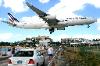 | Flying into St Martin. The runway starts about 100 yards from the water, across a short beach and a two lane road. Cars and people stop both for safety and to admire the shiny birds at close range. |