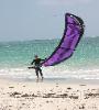 | Not all the wildlife and colors in Australia belong to animals. Kite surfing has become very popular in Australia as it has in the US. This surfer was getting ready to head out in Cottesloe Beach, Western Australia |